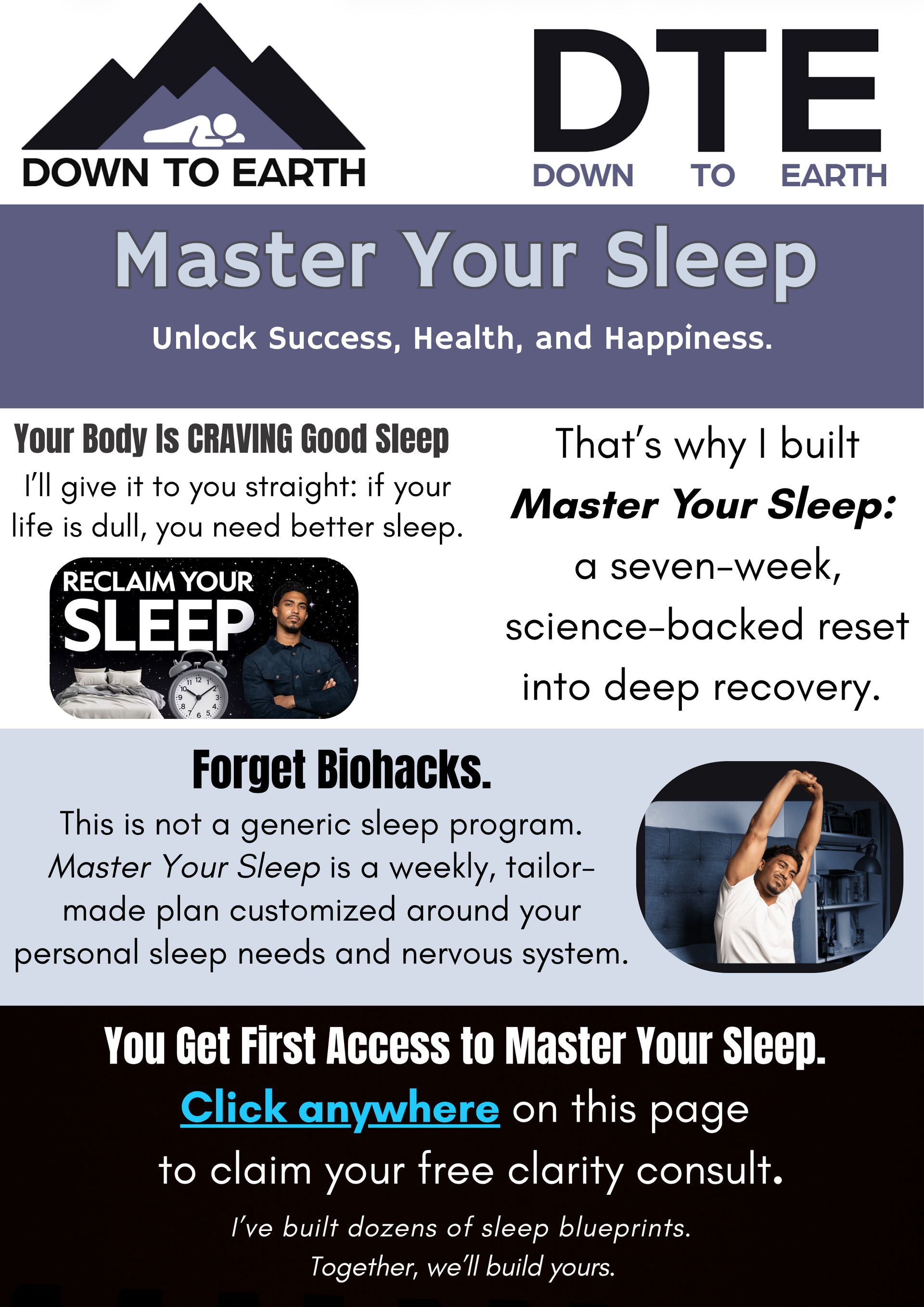 Click this link to visit the brand new Down to Earth ecosystem, or click anywhere within the brochure below to claim your free 1:1 sleep consult with me, and to learn more about MYS.